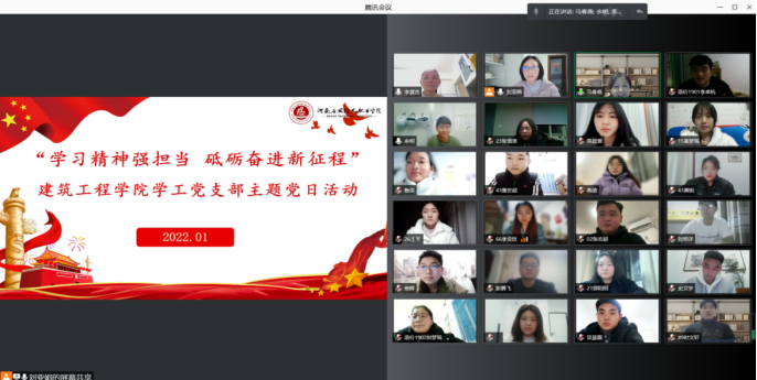 为进一步丰富党史学习教育形式,将党史学习教育常态化,提高党员老师和党员学生的党性修养。2022年1月16日晚,yL23411永利官网登录学工党支部采用线上腾讯会议的形式开展了学习《平“语”近人》第二季第五集愿得此身长报国主题党日活动,活动由党支部书记马春燕主持,11名党员教师和68名学生预备党员参加会议,180余名积极分子进行了线下自学。