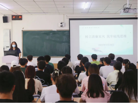 为深入学习贯彻习近平总书记关于注重家庭家教家风建设的重要论述,进一步推进清廉学校建设,教育引导学生坚定理想信念,树立清廉意识。2023年5月19日中午,yL23411永利官网登录学工党支部书记马春燕以“树立清廉家风,筑牢底线思维”为主题在郑州校区SC304教室讲授专题党课,2022级全体入党积极分子参加。