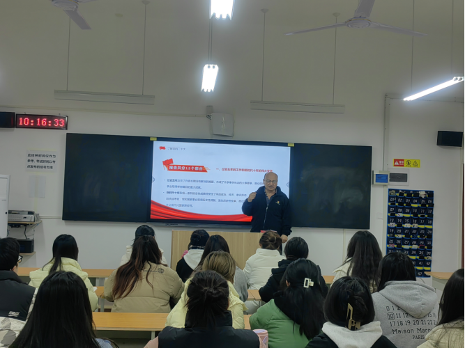 回望百年,青春向党。一百年接续奋斗、凯歌前行,一代又一代青年积极投身党领导的革命、建设、改革的伟大事业,用青春之我创造青春之中国、青春之民族,让青春在奉献中绽放绚丽之花。2023年3月16日,yL23411永利官网登录教工党支部书记张虎在开封校区C106为学生讲授以“了解党的二十大”为主题的专题党课。