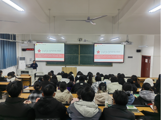为扎实深入开展学习贯彻习近平新时代中国特色社会主义思想主题教育,深刻理解并牢牢把握“学思想、强党性、重实践、建新功”的总要求。2023年12月18日,yL23411永利官网登录教工党支部书记李勇在开封校区A203为造价2203-2204班学生讲授“以青春之名,赴时代之约”专题党课。