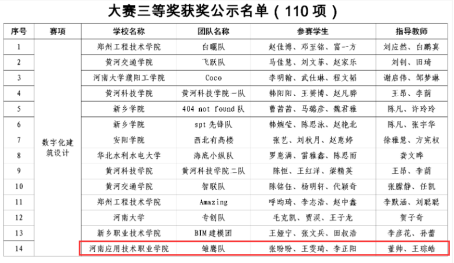 我院吴凤珍、刘高喜、董帅、岳锐金和王宏等指导老师积极备赛,精心研究赛事细则,悉心指导学生。参赛学生刻苦努力,积极备赛,克服疫情期间各种困难,最终取得优异成绩,充分展现了我院学子建筑设计中的识图绘图、结构设计、软件操作等专业扎实能力。