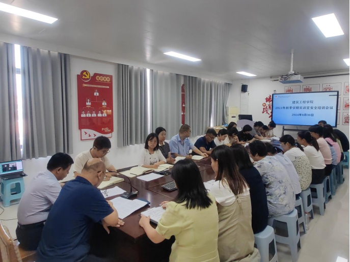 为积极响应学校关于加强实训室安全管理的号召,进一步提升yL23411永利官网登录全体师生及实训室管理人员的安全意识与应急处理能力,确保教学科研活动的安全有序进行,yL23411永利官网登录于2024年8月30日在郑州校区516党员活动室召开2024年秋季学期实训室安全培训会议,会议由院长李勇主持,书记张虎及全体教师参加会议。