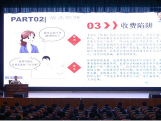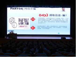 宋春磊围绕宿舍安全、网络安全、消防安全、财物安全、校外安全、人身安全五个方面,并结合工作经验,用幽默风趣的话语,列举众多典型事例,以同学们喜闻乐见的形式进行讲解,深入分析了在校学生人身和财产安全受威胁的原因,并提出了具体应对策略,提醒同学们在与不熟悉或身份不明的人员接触时一定要提高警惕、谨慎言行,不要轻易将个人信息透露给陌生人,更不要轻易相信对方,要保障自身安全。与此同时,他还倡导同学之间要和谐相处,相互宽容,以合法、合理、合情的方式解决分歧。