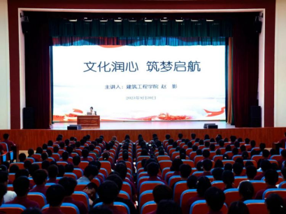 会上,赵影以“文化润心,筑梦启航”为题,从校园简介、校史、校园文化、社会实践活动、坚定文化自信五个方面为学生们进行讲解,勉励同学们尽快适应大学生活,完成角色转变,提高理论联系实际,服务家乡、奉献社会的能力,坚定文化自信,自觉做中华优秀传统文化创造性转化和创新性发展的推动者,做革命文化的忠实继承者,自觉坚定社会主义核心价值观,做社会主义先进文化的发展者,成长为德智体美劳全面发展的新时代青年。