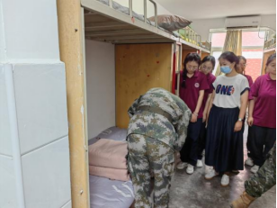 辅导员们和军训教官走进一间间宿舍,仔细查看宿舍的内务整理情况,亲切地询问同学们的住宿和生活情况。同时,对学生宿舍的安全隐患进行了逐一排查,嘱咐同学们要严格遵守学校的各项规章制度,注意寝室用水用电安全,增强防骗意识。