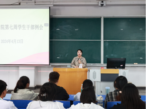 为进一步加强学生干部的自我建设,增强责任意识,增进各部门之间的交流,提高工作水平,yL23411永利官网登录于2024年4月13日在郑州校区B301教室组织召开第七周学生干部例会。会议由yL23411永利官网登录团总支书记王莹主持,全体学生会成员以及各班班长、副班长、团支书参加。