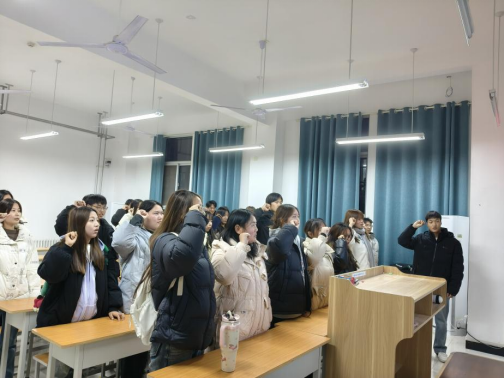 班会上,各位辅导员们首先向同学们阐述了诚信的内涵和价值,指出诚信不仅是一个人最基本的道德品质,更是社会和谐稳定的重要保障。辅导员结合学校关于考试纪律的相关规定,详细讲解了考试作弊的严重后果,包括取消成绩、纪律处分等,以此来警醒同学们切勿触碰红线。随后,在各班班长的带领下,各班同学开始了严肃庄重的宣誓。他们列队整齐,声音洪亮,右拳高举,郑重地许下诚信考试的誓言。那一句句坚定的誓言,彰显了同学们对诚信考试的坚守和决心。会议最后,各班同学分别签署了“诚信考试承诺书”。这份承诺书不仅仅是一个简单的签名,更代表了大家的承诺,意味着同学们将在考试中严格遵守考试纪律,不作弊、不抄袭,用自己的真实水平去迎接每一次挑战。