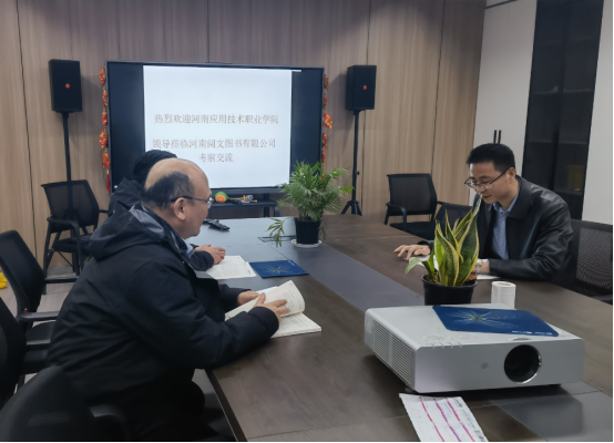 会上,张虎代表学院向河南阅文图书有限公司表示了诚挚的感谢,感谢公司长期以来对学院人才培养和就业工作的关心与支持。他介绍了学院的基本情况、专业设置、人才培养特色以及近年来在教育教学、科研创新、社会服务等方面取得的显著成绩。同时,他就学院当前面临的一些挑战和问题进行了坦诚地交流,希望能够得到企业的帮助和支持。李勇重点就校企合作、实习实训、就业创业等方面与公司负责人进行了深入探讨。他表示,学院一直以来都非常重视与企业的合作,希望通过此次访企拓岗活动,能够进一步加强与河南阅文图书有限公司的联系和沟通,共同探索人才培养的新模式、新途径。同时,他也欢迎公司能够积极参与到学院的教育教学和人才培养中来,为学院的发展提供更多的支持和帮助。