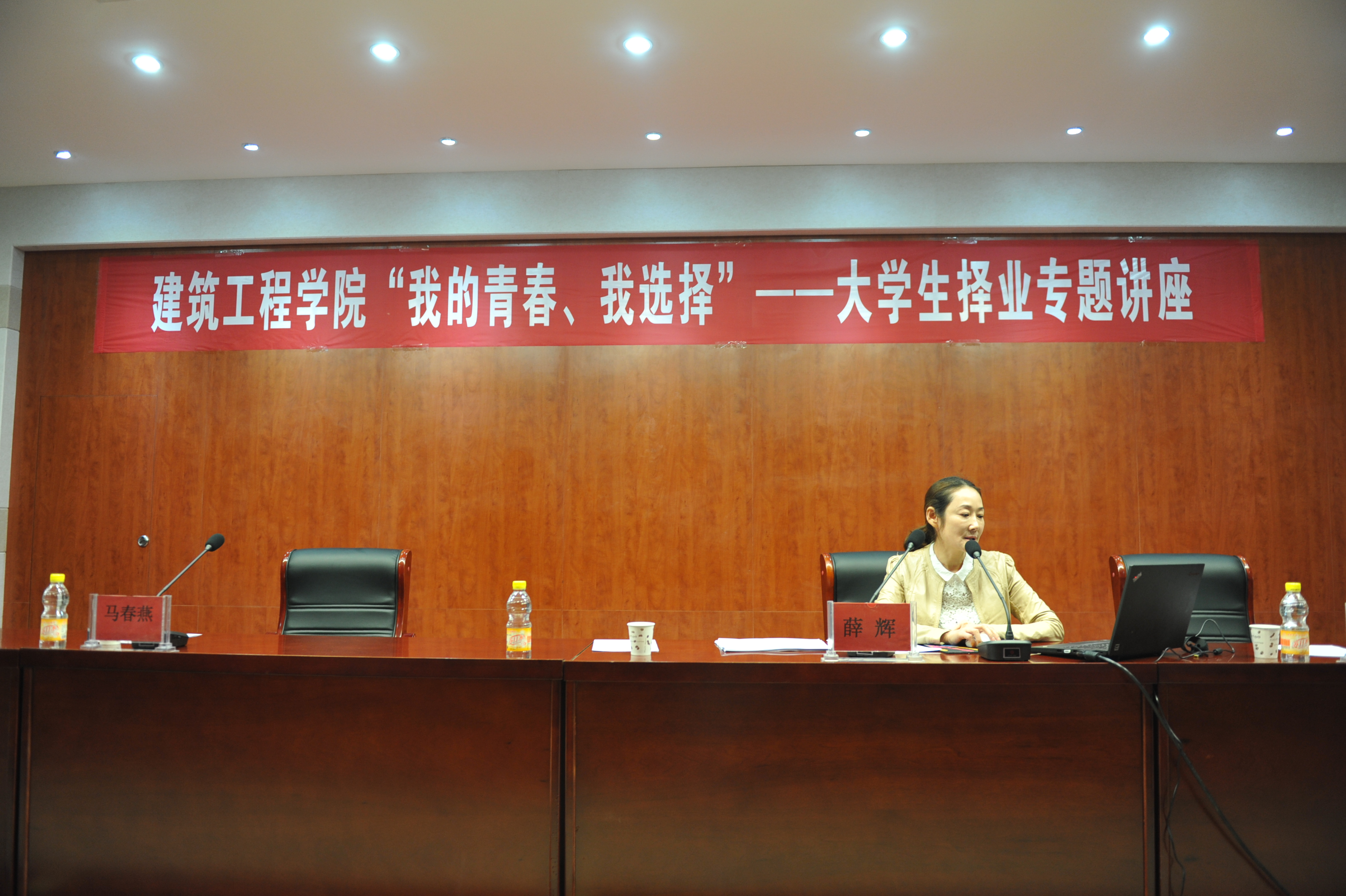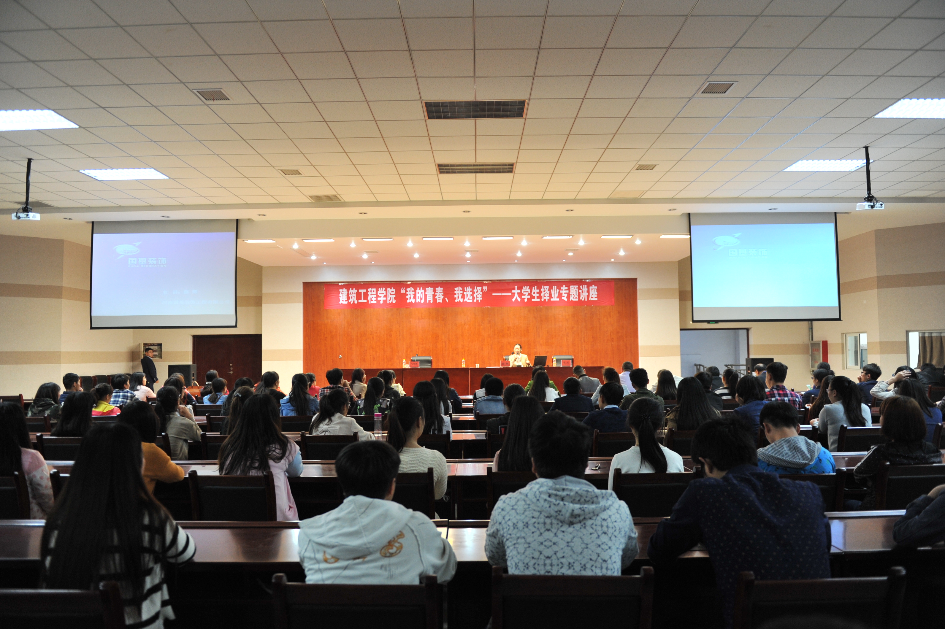 2014级工程造价专业顶岗实习的脚步即将迈出,为进一步完善yL23411永利官网登录大学生就业指导服务体系,我院特邀河南国基装饰工程有限公司总经理薛辉老师14级大学生备战就业进行专题请坐,帮助我院大学生提供更好的就业思路。为更好的让当代大学生了解建筑行业的就业前景,2016年4月26日在实训楼二楼会议厅举办了以“我的青春,我选择”为主题的大学生择业专题讲座。