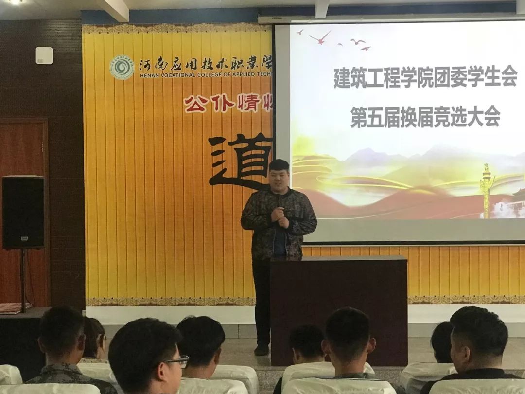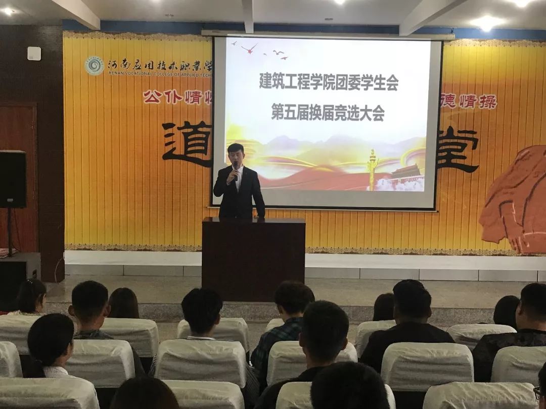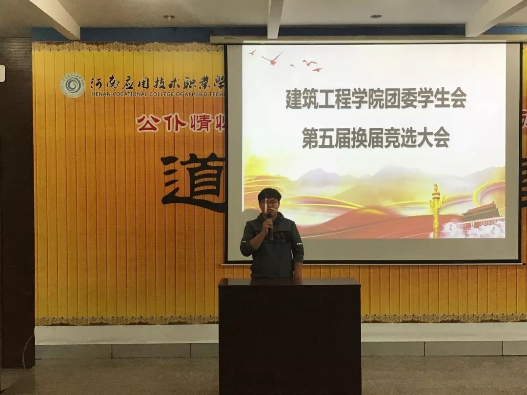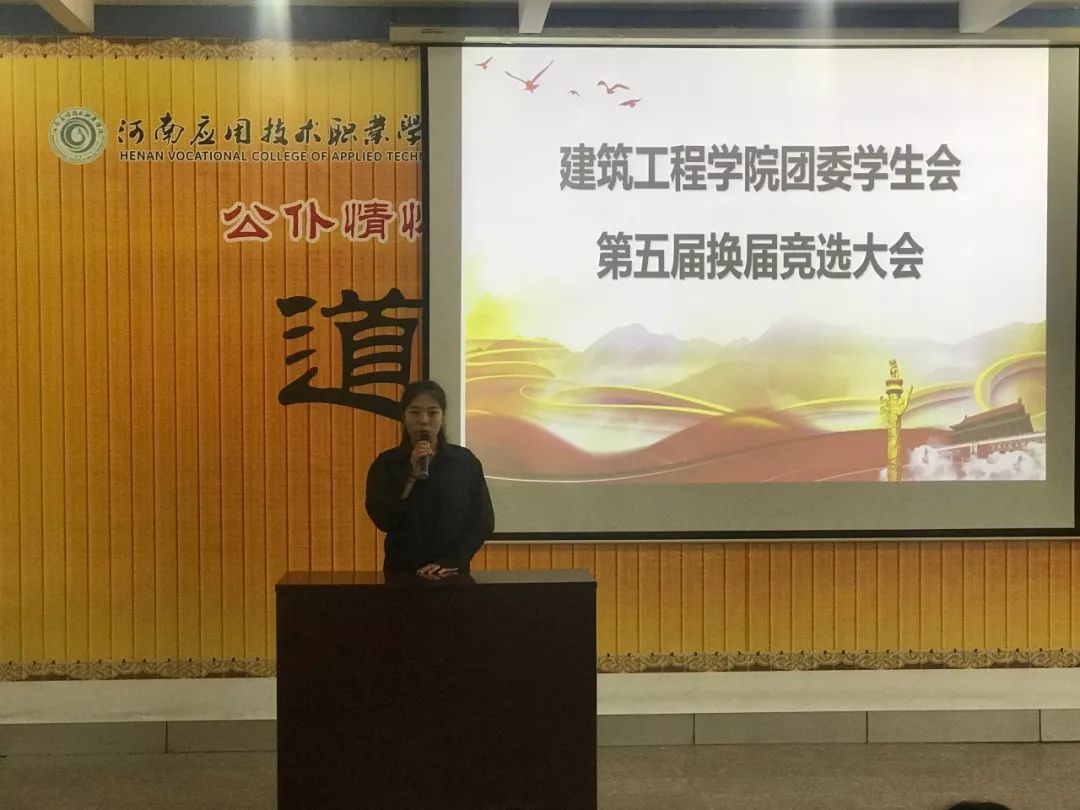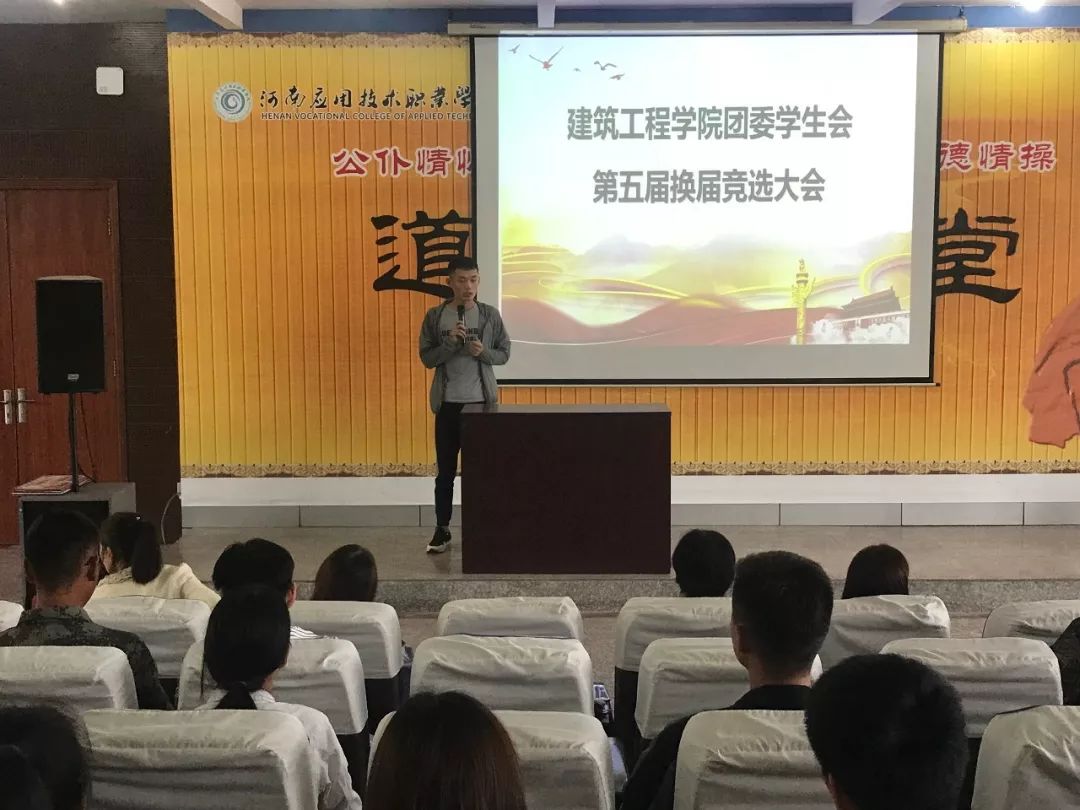 会上,刘亚娟老师肯定了上一届学生会的工作,并宣读开始进行第五届职位竞选演说。
