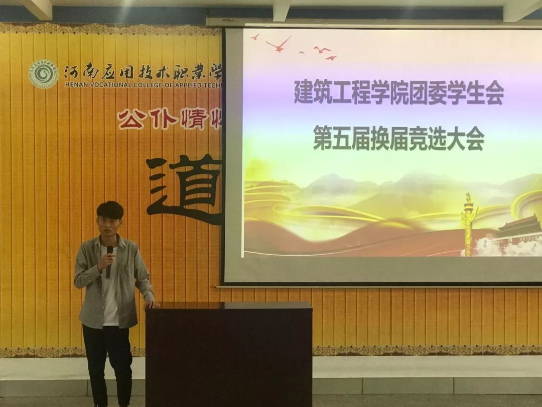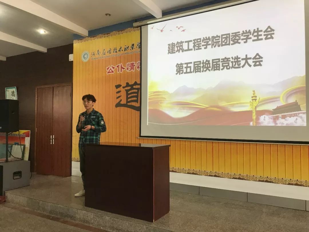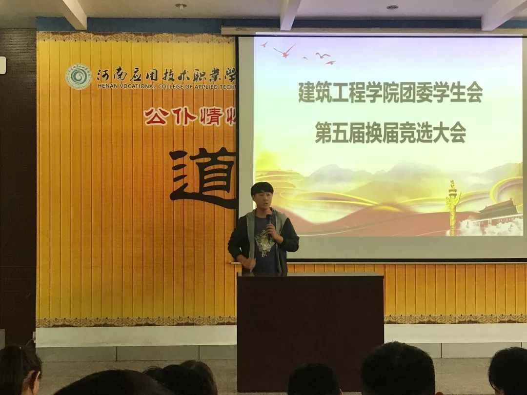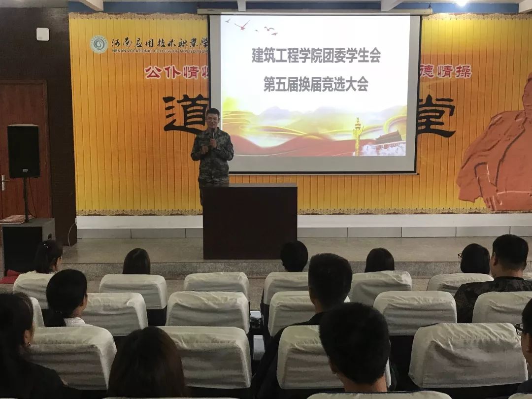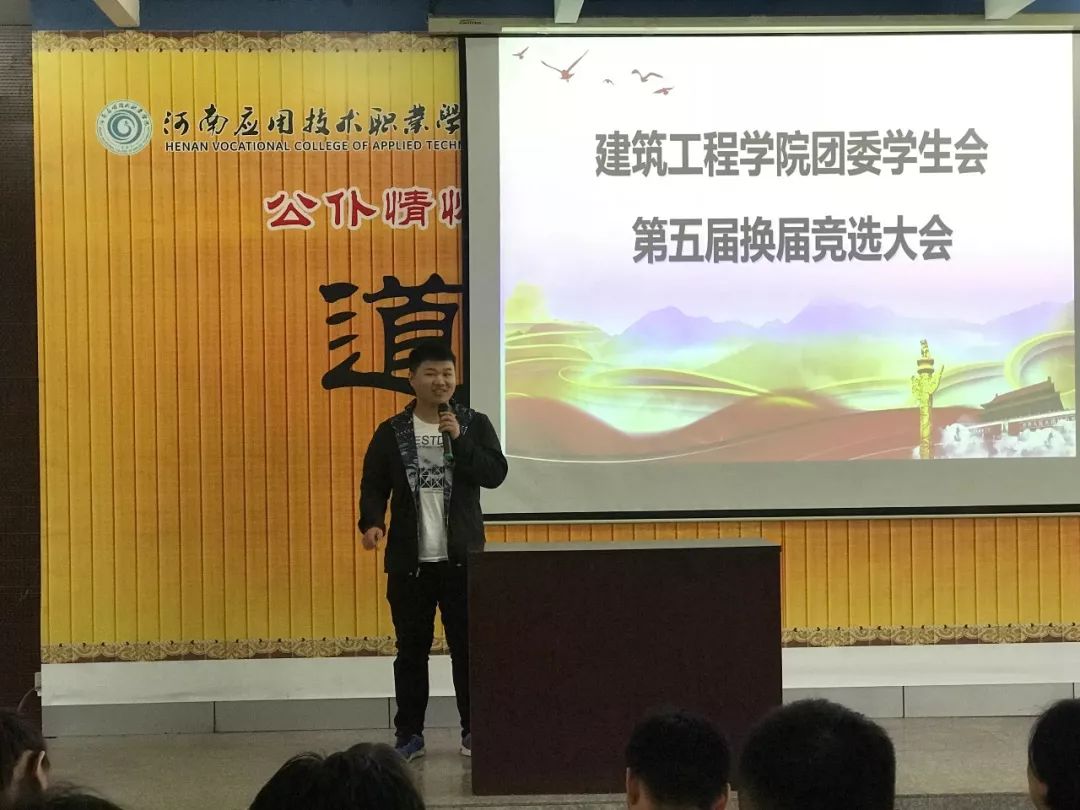 会上,刘亚娟老师肯定了上一届学生会的工作,并宣读开始进行第五届职位竞选演说。
