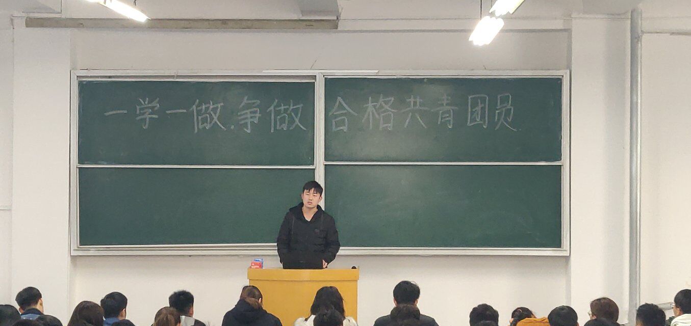 王开元同学讲到做合格共青团员,就要忠诚信仰,坚定理想信念。共青团是党领导的先进青年组织,是党的助手和后备军。做一名合格的共青团员,首先就要坚定政治信仰,一个没有信仰的人就会变得如行尸走肉般找不到生命的航向。