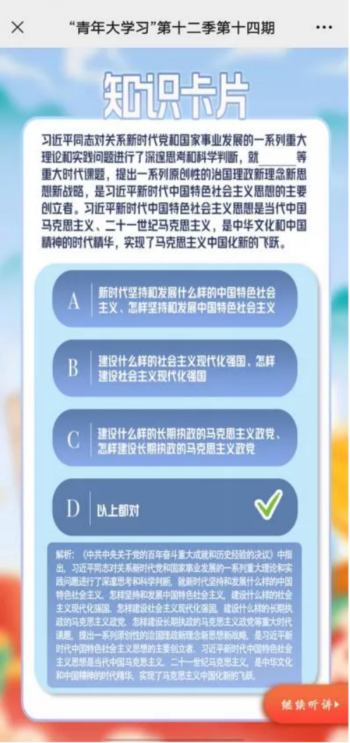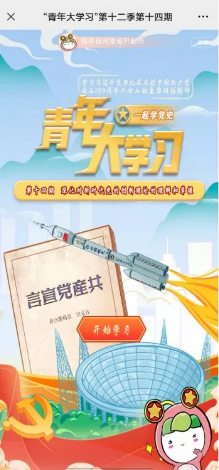 新的一周,“青年大学习”第十二季第十四期,学习主题为:【深化对新时代党的创新理论的理解和掌握】