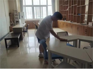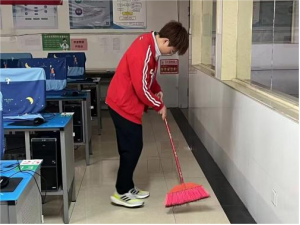 接下来是同学们相互配合、分工明确,不放过每一个死角,不忽略每一个细节地对实训室及教室进行彻底的清扫,将地面清扫干净,室内进行消毒,桌面整理整洁,恢复教室原有的干净面貌。他们查看安全情况,仔细检查电源开关、窗户是否关上。在确保安全之后,他们又检查卫生状况,并且清理垃圾,还将桌椅摆放整齐。