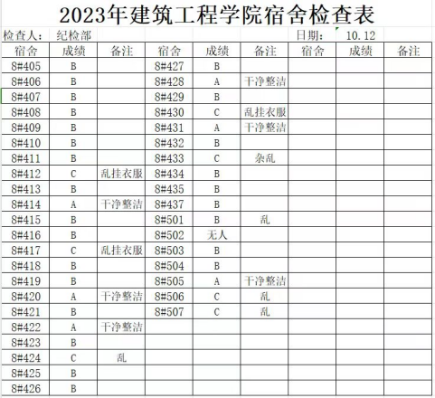 检查结果反映,大多宿舍地面无杂物,房间干净整洁,物品摆放有序。但仍有一部分宿舍存在宿舍违纪,卫生较差等情况。针对存在问题的宿舍,已及时提出整改建议,并叮嘱同学们要勤打扫勤整理,保持好宿舍卫生,共同营造一个干净、舒适的宿舍环境。