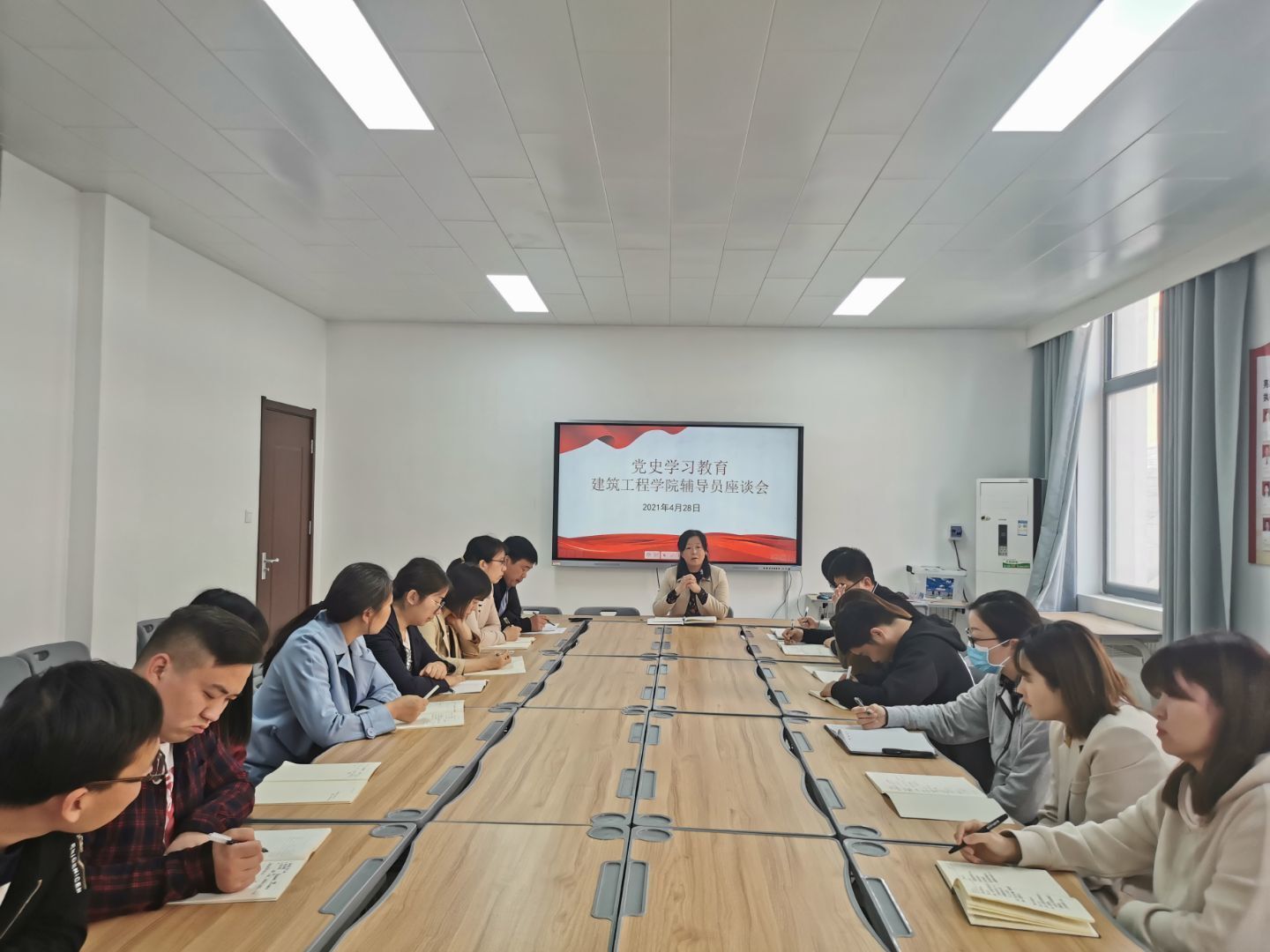 为深入开展党史学习教育,更好地引导学生在“永远跟党走”主题教育活动中传承红色基因、红色传统,2021年4月28日中午,yL23411永利官网登录在办公楼110开展以“学习党史强信仰,以德为先育新人”为主题的党史学习教育专题辅导员座谈会,2018级、2019级、2020级全体辅导员、班主任参加会议,东校区辅导员通过视频形式参加会议。会议由学院书记马春燕主持。