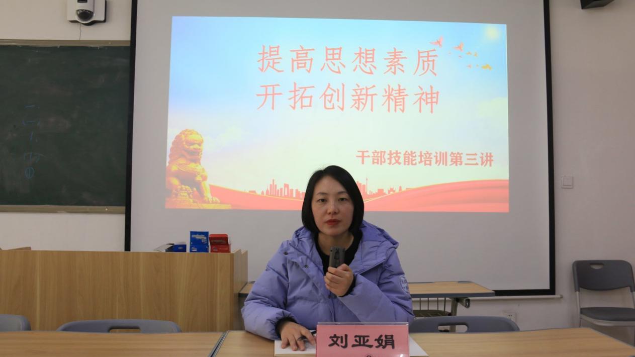 培训过程中,刘亚娟老师围绕精神文明检查要求,对学生干部提出以下几点要求:一是要求学生会成员从职能定位、运行机制等方面出发,明确本职工作,创新性开展工作;二是全体同学要遵守上课纪律,做到文明上课,杜绝迟到早退现象发生;三是按照无烟校园要求,做到全员禁烟;四是注意宿舍卫生及通风,同时做好个人日常防护,保护好自身的个人安全和财产安全。
