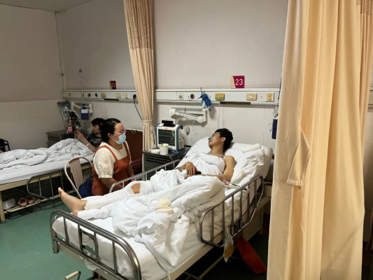 杨桂忠对学院领导、老师的到来既意外、又感动,他表示意外虽然导致自己腿部骨折,但是学院及老师们的关怀,让他倍感亲切和温暖,自己一定会积极配合治疗,调整好心态,早日康复,不辜负大家对自己的期望。