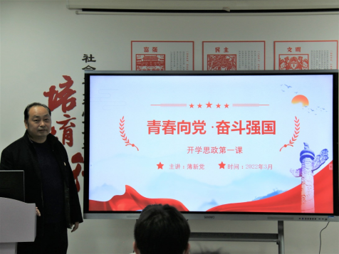 为深入贯彻习近平总书记关于“大思政课”建设的重要指示精神,全面落实《关于新时代加强和改进思想政治工作的意见》,更好地落实立德树人根本任务,根据学校“开学思政第一课”工作有关要求,2022年3月3日,副校长薄新党在办公楼516党员活动室为yL23411永利官网登录部分党员老师和学生代表讲授了以“青春向党、奋斗强国”为主题的2022春季“开学思政第一课”。