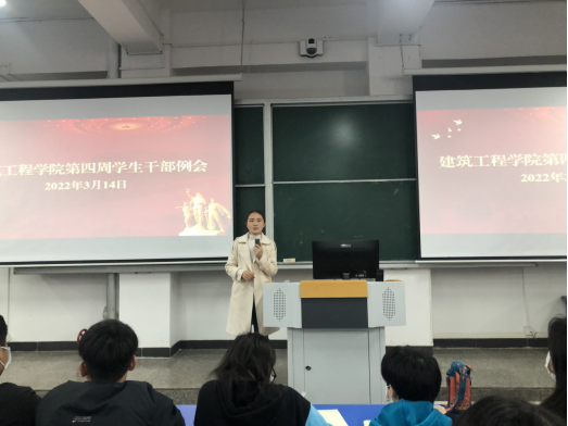 会议最后,学生会主席夏红乾对近期的工作做出详细安排,希望各部门能再接再厉,针对出现的问题及时改正,做好一个学生干部的本职工作,提升自己的综合能力。